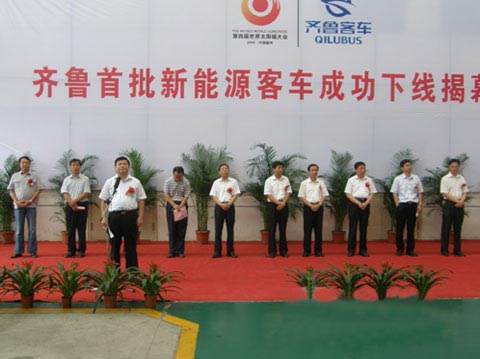 据悉,齐鲁汽车与清华大学汽车工程系于2010年4月份达成战略联盟,开始合作研发新能源纯电动和混合动力汽车。产品主要包括7米纯电动考斯特商务用车、10.5米纯电动和混合动力客车。就在齐鲁汽车刚刚完成对图纸资料和关键技术的消化吸收,并逐步掌握新能源客车核心技术的时候,第四届世界太阳城大会组委会指定齐鲁汽车为此次大会唯一新能源接待用车。这对齐鲁汽车既是一个机遇也是一个挑战。全体员工经过数月的奋战,终于结得硕果,齐鲁汽车拥有自主知识产权的首批新能源产品成功下线了。