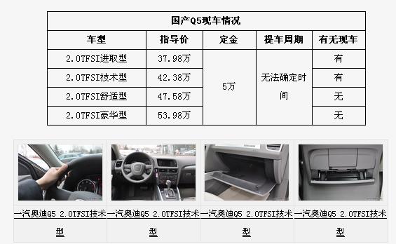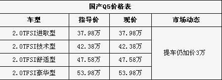 奥迪Q5:有少量现车到店 仍需加价3万提车