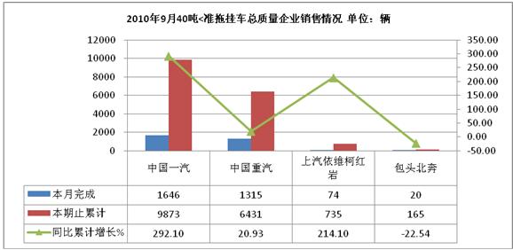 2010年9月40吨<准拖挂车总质量企业销售情况 单位:辆