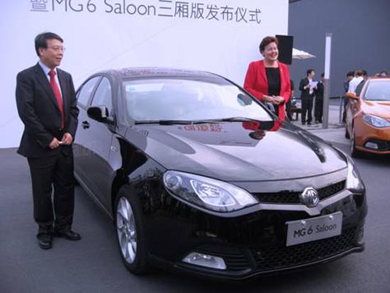 10月18日,在上海世博园英国馆,上海汽车集团股份有限公司执行副总裁、上海汽车乘用车公司总经理陈志鑫先生与英国驻沪总领事Carma Elliot女士,共同为“新基准轿车”MG6系列的全新之作MG6 Saloon三厢版揭开面纱。陈志鑫先生认为,全新MG6 Saloon选择在世博园英国馆首发并非只是通过“回家”的概念来彰显这个英国汽车品牌延续86周年的伟大血统,实际上,这款新车明年将会登陆英国市场,实现真正的“回家”。 英国驻沪总领事Carma Elliot女士对于陈志鑫先生一行的到来表示欢迎,但同时她也坦言感到一丝“伤感”,因为“这是英国馆在拆除前所举办的最后一个新闻发布会了”。