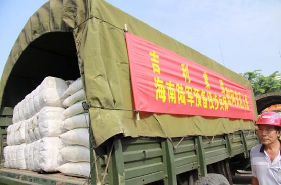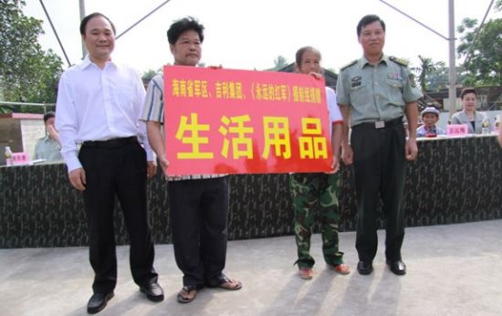 李书福董事长与海南军区领导向受灾群众捐赠生活用品