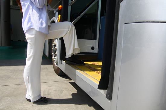 地板采用一级踏步的全通道低地板工艺设计,再加上ECAS电控空气悬架系统,实现整车高度调节及侧跪功能,不管是老人、小孩都可轻松上下,极为方便。