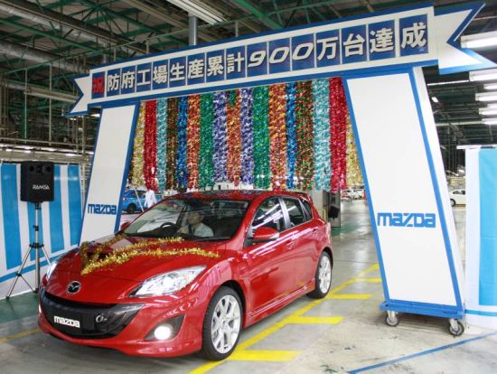 在累计产量突破900万辆的庆祝仪式上,马自达防府工厂总经理Nariaki Uchida表示:“过去两年多时间里,尽管外部经济环境恶劣,但是在所有员工及附属企业通力合作进行创新生产的努力下,我们很快达到了900万辆这一目标,并快速地向着1000万辆的目标迈进。”