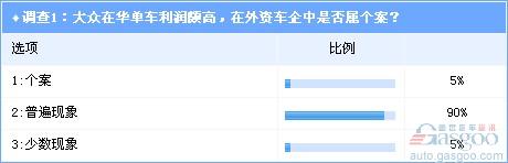 对于占有近六到七成乘用车市场份额的外资车企而言,中国汽车市场已成为鲜美无比的全球最大蛋糕,不仅全年销售总额将达到1700多万辆的市场规模,其蛋糕的鲜美之处还在于销量屡创新高的同时,还享受着其它成熟市场无可企及的单车高额利润。根据盖世汽车网最新一期业界调查得出的结论,作为外资车企中最具代表性的大众集团在中国市场所取得的单车高额利润并非纯属个案,而是目前中国整个汽车行业存在的普遍现象。而且,这种现象还将持续相当长的一段时间。