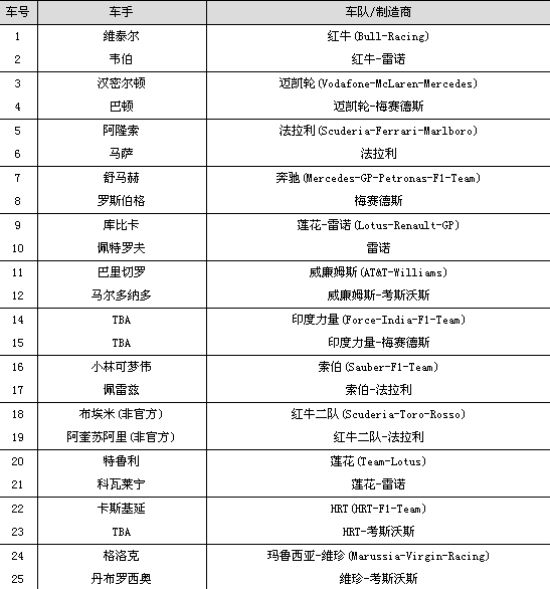 2011年F1车手阵容