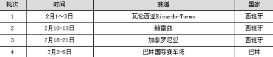 2011年总共有四轮季前测试,分布在两个国家的的四条不同的赛道。首轮于2月1日在瓦伦西亚的Ricardo-Tormo进行;最后一轮在巴林国际赛车场。一周之后,将在那里举行新赛季的揭幕战。