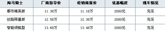 近日,编辑在北京地区海马经销商处了解到,海马骑士新添一款丝路限量版,目前全系三款车型现车充足,现金优惠2000元,感兴趣的朋友可以关注下,详情见下表: