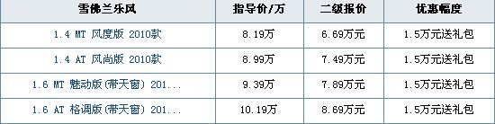 近日,编辑从上海地区二级经销商了解到,在继1.8万元的优惠幅度之后,2010款乐风目前又出现了全系1.5万元的现金优惠,幅度大幅缩水。眼下全部车型都可以赠送礼包,礼包中包括价值8800元的装潢和20000元的高额保险。具体明细如下表: