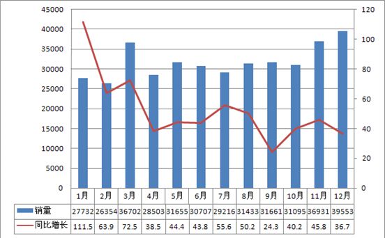 从分月的销量分析,皮卡行业2010年全年均曾现出稳步增长的趋势,其中12月份达到销量顶峰,其余月份实现平稳增长,各月销量变化与汽车行业总体市场表现基本一致,说明皮卡车今年市场表现稳健,曾现比较良好的发展局面。