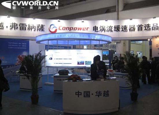 作为国内知名电涡流缓速器生产企业,华越携包括第三代缓速器控制器、FV系列缓速器、V系列电涡流缓速器等多款主打产品参加本次展会。现场的一位工作人员告诉记者,华越115平方米展厅面积,是客车零部件企业展出面积最大的一家。当然,除却最大的展厅,华越的第3代电涡流缓速器控制器(基于CAN总线通信,SAE J1939协议码)也吸引了众多专业观众的目光。据其技术人员介绍,这款基于CAN总线的控制系统在国内外尚属首例,同时,该技术也代表了全球电涡流缓速器控制技术的较高水平。