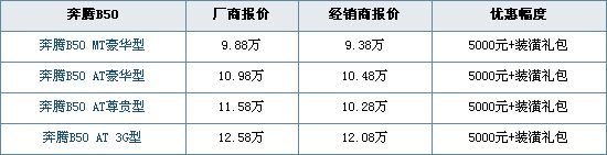 购奔腾B50指定车型最高可优惠1.5万元