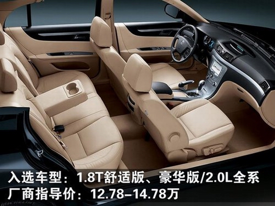 入选车型:1.8T舒适版、豪华版/2.0L全系
