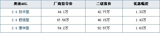 日前,编辑从沪上二级经销商处了解到,奥迪A6L目前可享受最高1.63万元的现金优惠,并赠送精美的装潢大礼包。有兴趣的网友可以到店详谈,具体优惠明细如下: