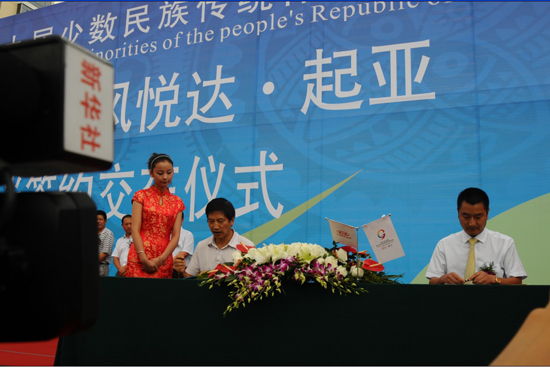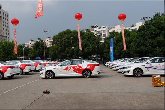 8月11日,第九届全国少数民族传统体育运动会指定用车签约交车仪式,在省政府大院内隆重举行。现场进行了120台指定用车-东风悦达起亚K5的交接。其中,70台代表团接待用车、30台组委会工作用车和20台火炬传递用车。省领导及第九届民族运动会各部门的领导、东风悦达起亚厂家领导代表、贵州华通汽车代表出席签约交车仪式。