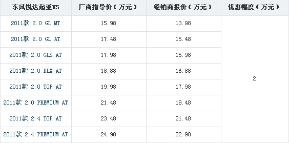 价格波动情况:东风悦达起亚K5刚刚上市,销量一直不错,几乎没有现金形式的优惠,庞大龙华庆现在购车优惠2万,优惠力度还是非常大的。