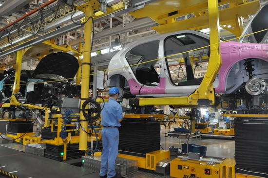 在总装车间,车主们大呼神奇,亲眼见证车壳子一步步变成一辆车。在这里有三个值得我们关注的问题。一是自动质量控制点,所有的东西,比如说扭矩,都通过计算机控制,而且记录下来,一旦螺丝拧紧过程中出现问题,就可以从计算机中查到,从而保证每个螺丝的装备质量。另外,在总装车间可以看到一排排自动行驶的小车,这就是SPS系统(就是随行料架)。一个工厂要生产4、5款车型,每个车型配置都不一样,如何实现在一条总装线上生产这么多的车型呢?就是靠这个SPS系统。SPS系统完全由电脑控制,料架和车子一起走,一个车子的物料配好放在车子上,料装完这个车子就装完了。第三个就是安灯系统,如果生产线上的装配工人发现问题,就拉动拉绳,流水线就会停下来,直到问题解决。精益化、敏捷化、柔性化、模块化生产方式贯穿了整个生产流程。