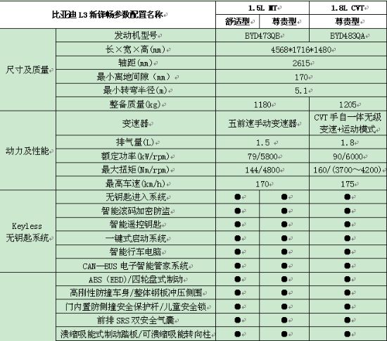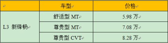 [NextPage]附:L3新锋畅参数配置表