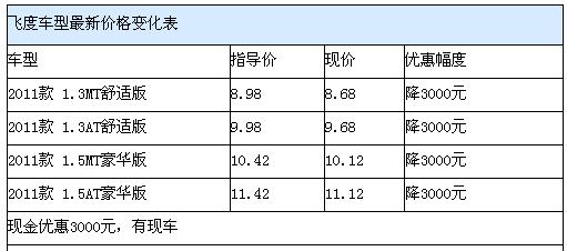 近日,编辑从广汽本田汽车杭州之田特约销售服务店了解到,飞度现金优惠3000元,到店现车比较齐全,具体内容如下表: