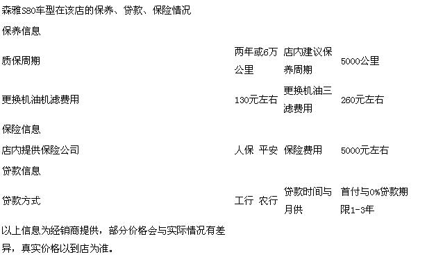 珠海地区,珠海市众大利物资车业有限公司一汽森雅4S店提供了很多附加增值性服务,如直赔保险和贷款,下表将为您提供更多有用信息:森雅S80车型在该店的保养、贷款、保险情况: