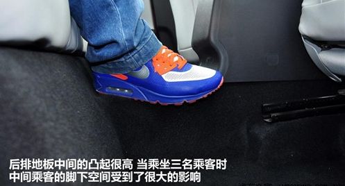 后排地板中间的凸起很高,坐在中间的乘客只能是骑在上面了,而且中间的位置也没有头枕,看来后排还是做两个人比较合适。不过,在这款豪华型上却没有中央扶手,后排出风口就更不要想了,相比同级别车型,在后排乘客的舒适性方面中华H530表现缺乏一些竞争力。