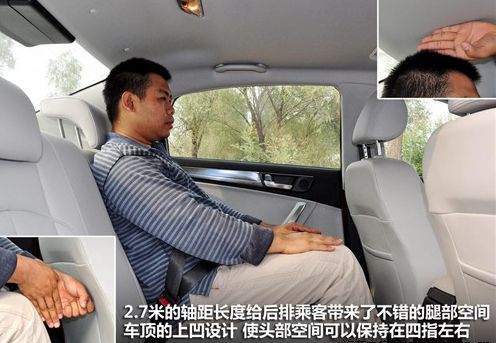 中华H530在乘坐空间方面的表现还是令人满意的,身高180cm的体验者坐在前排将座椅调至最低时,头部空间为四指;当坐到后排时,头部空间仍然可以保持在四指,后排头部空间优秀的表现要归功于它车顶上凹的设计,腿部空间也可以达到近两拳。