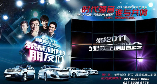 荣威的车友们,大家还记得那些曾经影响了一代人的歌曲吗?《挪威的森林》、《单身情歌》、《蒙娜丽莎的眼泪》、《你怎么舍得我难过》、《双鱼的眼泪》……一曲曲经典歌谣,伴随着我们成长。对于狂热迷恋伍佰、林志炫、黄品源的歌迷们而言,10月15日,绝对是个好日子!在这天,那些叱咤华语乐坛十余年的巨星们呼朋唤友,携手新生代歌手郁可唯等空降武汉体育中心,只为“荣威和他的朋友们”重温时代强音,荣威2011全时数字演唱会即将掀起科技炫音风潮,熠熠星光必将闪耀武汉初秋之夜。