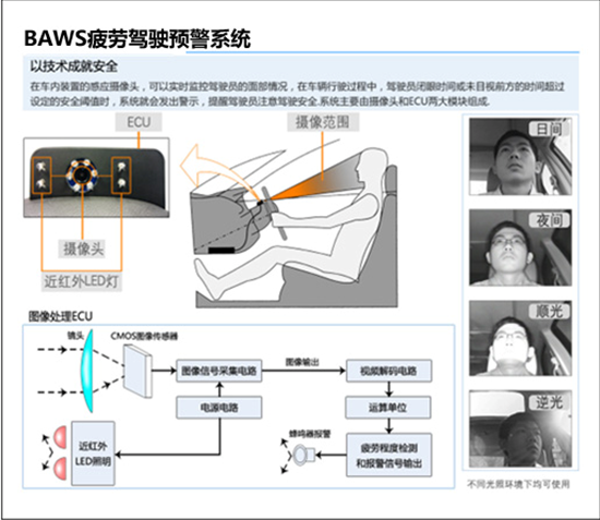除了1.5TI+DCT动力组合,比亚迪还为G6装配了BAWS疲劳驾驶预警系统和TPMS胎压监测系统等领先科技,提高主动安全。比亚迪G6可说是首开15万元以下车型搭载"BAWS疲劳驾驶预警系统" 的先河。该系统可以实现"全天候实时监测,人工智能识别,多媒体语音报警,疲劳等级自动调整"四大功能。在科技方面可以与奔驰新E级、沃尔沃XC60、皇冠等豪华车型媲美,让"疲劳驾驶预警系统将从豪华车的神坛,飞向寻常百姓车中。