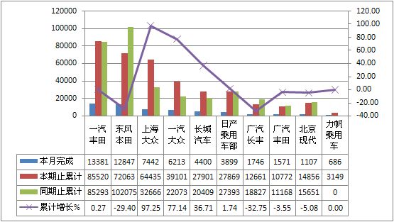 2011年9月四驱运动型多用途车产量TOP10 单位:辆,%