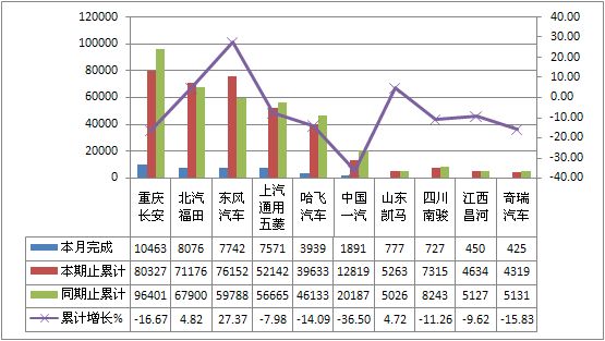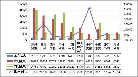 2011年9月货车生产219151辆,累计生产2006917辆,销售217505辆,累计销售2075380辆,同比累计增长分别为-4.48%和-2.36%。