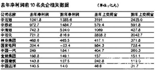 去年净利润前10名央企相关数据