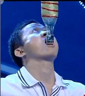 在湖北卫视"吉利全球鹰我就是天才"选手招募中,来自深圳的廖朝文用嘴顶起了自己的梦想。作为热身,他先后用鼻子顶起了底部不规则的黄瓜、毫无重心的塑料袋、毫无重量的A4纸,廖朝文的表演证实了顶功并不是依靠所顶物体的重量以达到平衡的目的,个人的反应能力及勤学苦练才是成功的王道。