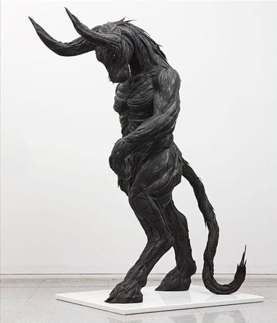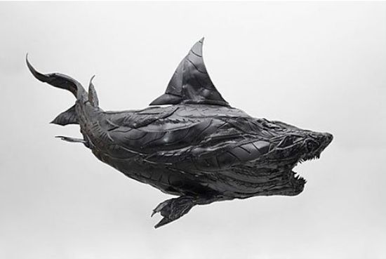 这是韩国艺术家Yong Ho Ji用轮胎做成的犀利雕塑,每一件都只用到了轮胎为主要原料,辅之以合成树脂进行粘合,并用钢架来固定。艺术家说,他给自己的这套作品起名为“突变神话”(Mutant Mythos),反映的是达尔文进化论主导下的大千世界——由各种较低等的动物,最终进化到人。