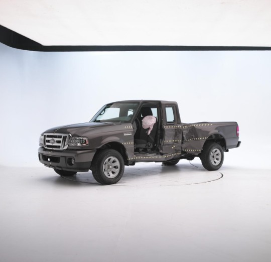 与福特的皮卡相比,道奇皮卡的撞击受伤是比较严重的,在遭受同样撞击之后,可以清晰的看出福特皮卡的B柱没有明显的内凹,仅仅是后斗厢与车身的接缝处有凹陷,福特皮卡可谓强悍。