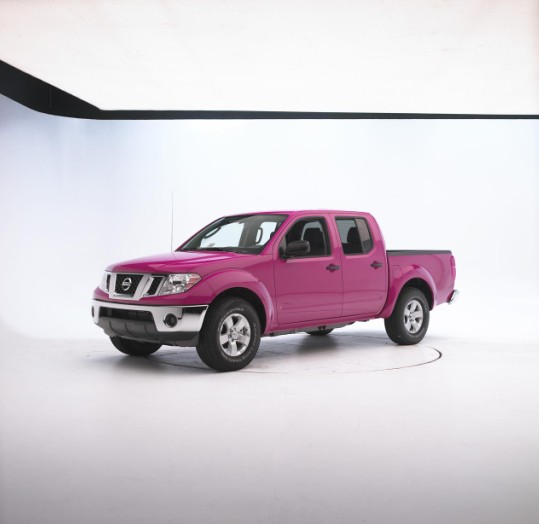 被撞前的日产皮卡,安安静静的站在原地,粉红色的外观还是很销魂滴。