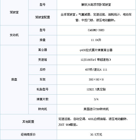 动力性能对比:J6发动机是解放自主生产的,较之天龙dCi技术的机器是要差一些的,在标载情况下,天龙是要比J6省油一些的。但是J6的起速是天龙望尘莫及的。