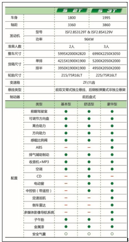 开瑞绿卡参数配置表