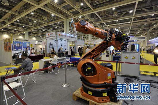 10月11日,一台搬运电子线路板的机械臂在第六届中国国际物流科技博览会上展出。当日,第六届中国国际物流科技博览会暨2012中国(苏州)国际物流技术装备及配套设施展览会在苏州国际博览中心开幕。