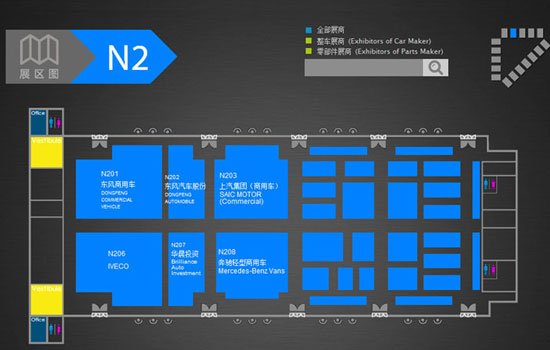 N2 号馆: 东风商用车、东风汽车股份、上汽商用车、IVECO、华晨投资、奔驰轻型商用车及中外方汽车零部件等