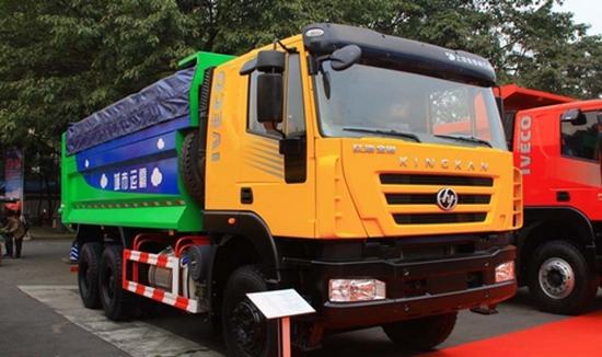 营运中渣土车可实现远程全程监控。新车型选装改进完善后的车载北斗定位管理终端,实现了发动机ECU、车载北斗定位管理终端、市综合信息管理、指挥、调度、监控平台和各施工运输企业分平台的智能互动。现行使用的渣土车常常超载,这样触目惊心的画面今后将有望杜绝。新型车箱盖板将由两侧蝶形盖改为前后平推的电动卷帘或拆叠式新型环保顶盖(分内置轨道和外置轨道两款供用户选用),密闭后顶盖低于箱板,密闭前推时可将少量堆装料推平,堆装超标,平推顶盖自动保护停止。如密闭顶盖不密闭到位或人为拆除损坏,重车时发动机输出功率转速自动受限,车辆只能怠速慢行,不能正常行驶,并发出声光报警提示;驾驶员不能私拆和更改,实现强制杜绝堆装超载和沿途洒漏的目的。