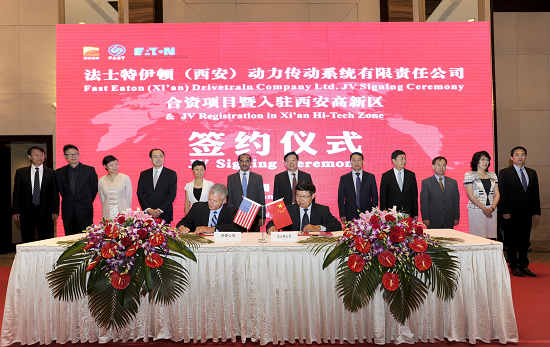 近年来,法士特凭借在业界的影响力和品牌知名度,不断加快国际化发展步伐。2011年与美国卡特彼勒公司合资成立西安双特智能传动有限责任公司,2014年与全球领先的动力管理企业伊顿公司联合组建法士特伊顿(西安)动力传动系统有限责任公司,并与德国威伯科汽车控制系统公司、英国壳牌公司、瑞典沃尔沃、日野汽车等世界知名品牌企业建立了良好的战略合作关系, 为企业全球化发展实践打开了大门,开创了企业全球化、多元化、高端化发展新局面。