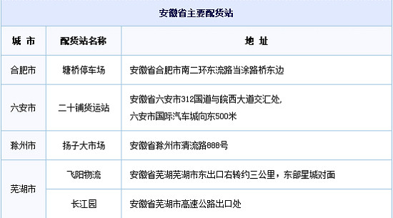 安徽省主要配货站