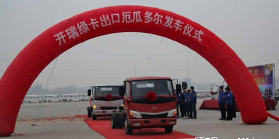 2014年10月31日,开瑞绿卡在生产基地举办了“开瑞绿卡出口厄瓜多尔发车仪式”。奇瑞汽车开瑞事业部总经理杨本宏,开瑞卡车销售公司总经理李建国、厄瓜多尔CINASCAR公司代表等出席了此次发车仪式。