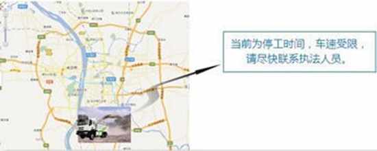 渣土车在禁止通行时间内驶入限货通行区域及路段,由控制系统语音及时提示,督促车辆尽快驶出限货区域及路段,便于政府部门监管。