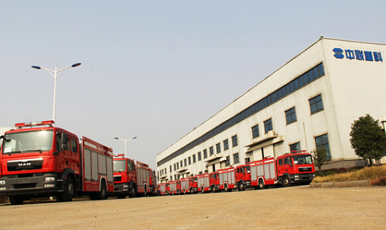 中联重科望城工业园23台城市主战消防车整装待发