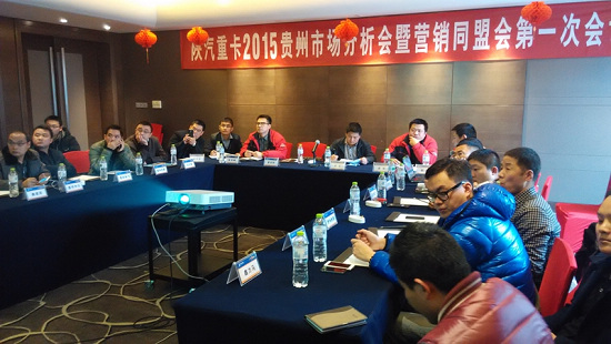 最后,贵州办事处主任刘龙做了总结发言,他强调:2015年贵州市场主流产品配置不变,仍是340马力EGR+12档变速箱;经销商团队更加成熟,营销队伍有大步提升;贵州资源准备充足,完全可以应对资源型市场旺季的需求,比竞品储备更具优势;团队依然保持积极高涨的营销激情,办事处全员自信满满;服务渠道受理后,在服务意识、服务态度、服务硬件、销服协同等方面有明显提升,一旦市场需求好转,贵阳办事处储备的国三上户必定会成为我们抢夺2015年贵州市场的制胜法宝。