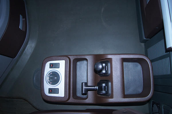ZF 12AS2540型变速箱控制开关及下方带有主车气刹和挂车气刹开关。