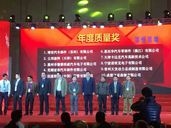 海马汽车2015年度供应商年会以“品质·品牌·赢未来”为主题,本届年会中海马汽车共颁发了26个年度优秀供应商奖、20个年度质量奖,其中海口基地、郑州基地各有13家供应商获得年度优秀供应商奖,各有10家供应商获得年度质量奖。德赛西威是郑州基地10家获得年度质量奖的企业之一。