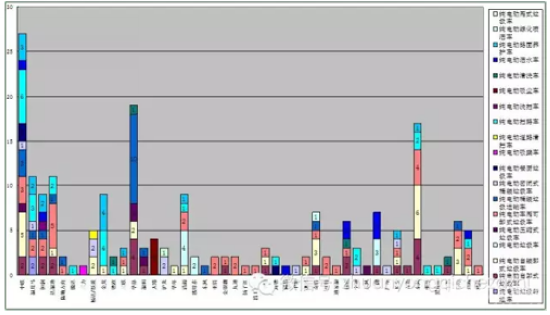 目前,纯电动环卫车主要使用东风、福田、江淮、凯马、跃进的纯电动底盘进行改装,还有长安、江铃、达福迪、恒润、中联、森源、清源、通家福、泓锋泰、扬子江、黑龙江、陆地方舟、海德等品牌的纯电动底盘目前只在本企业生产的纯电动环卫车车型上使用。从公告发布车辆类型看,纯电动垃圾车、纯电动厢式垃圾车、纯电动垃圾转运车实际上都属于纯电动自卸式垃圾车一类,纯电动道路清扫车属于纯电动扫路车一类,总质量3.5 t以下的纯电动路面养护车属于纯电动清洗车一类。