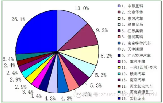 纯电动环卫车前15家企业公告占比