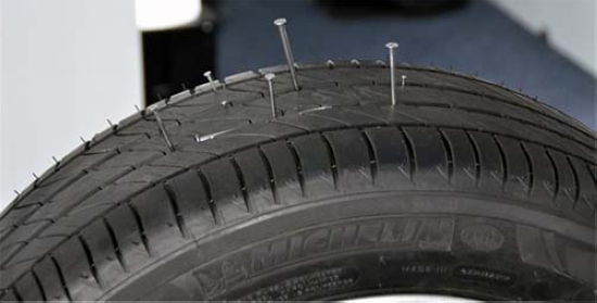 目前市场上出现的自修复轮胎,工作原理大同小异:轮胎内层涂有特殊的密封剂材料,它可在尖锐物体刺穿的瞬间将穿孔堵住,对轮胎进行永久性修复。
